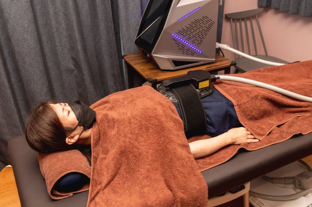 九州希少!インナーマッスルまで収縮!電磁パルスによる最新の痩身技術。寝たまま施術で刺激が苦手な方にも楽々筋トレ。 腹直筋離開の改善、健康維持、代謝UPに!